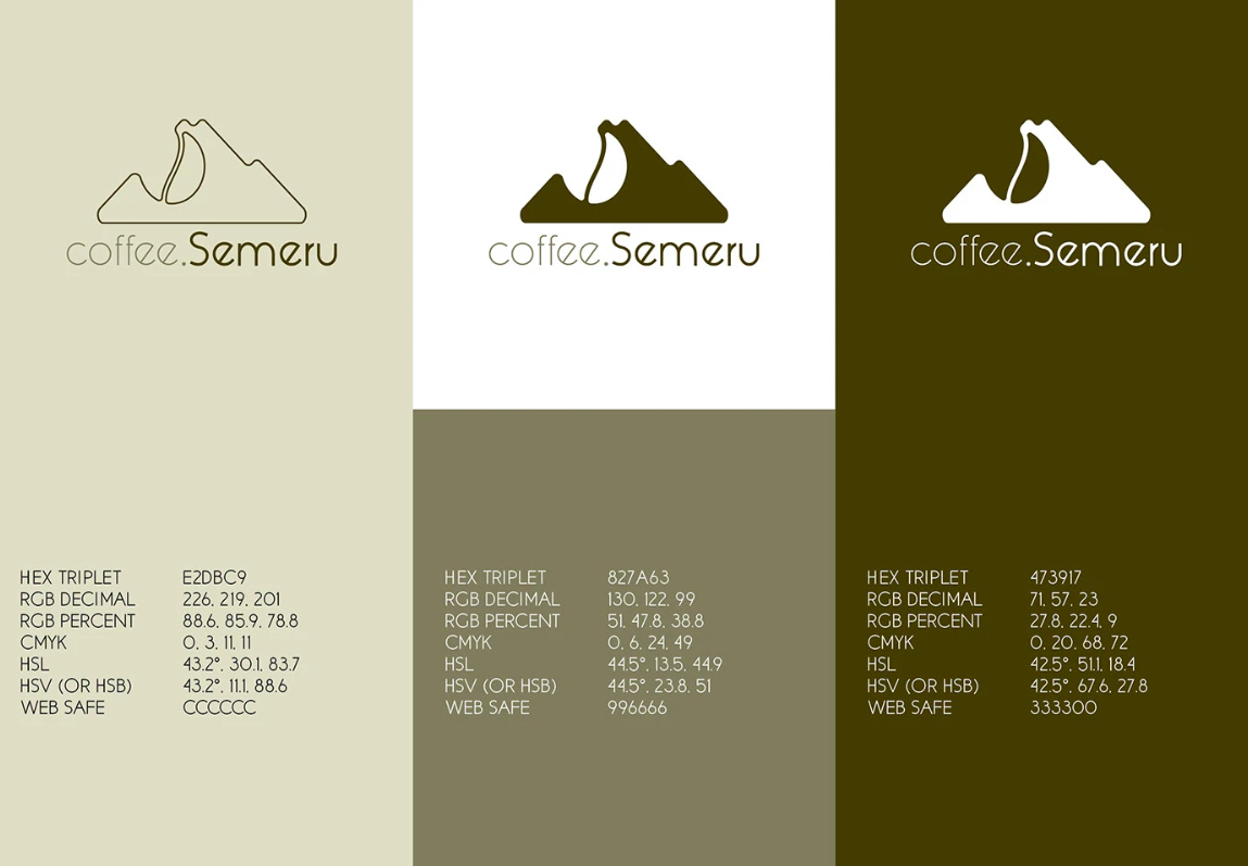 Color plays a huge role in shaping how people feel about a brand. For Semeru Coffee, we developed a three-part color palette inspired by the earth, volcanic soil, and roasted coffee tones: