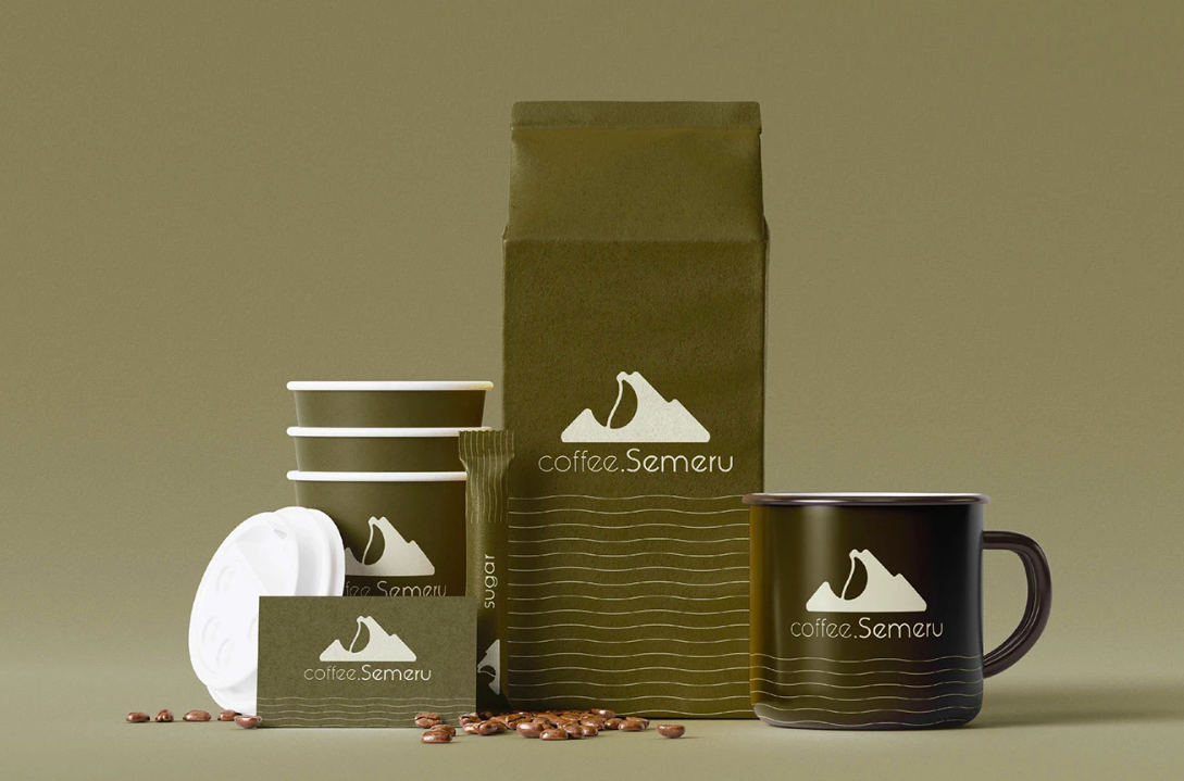 The logo design merges the silhouette of Mount Semeru with a coffee bean — a subtle but powerful visual metaphor that reflects the brand’s origin and product. It’s more than a logo — it’s a statement about place, passion, and purpose.